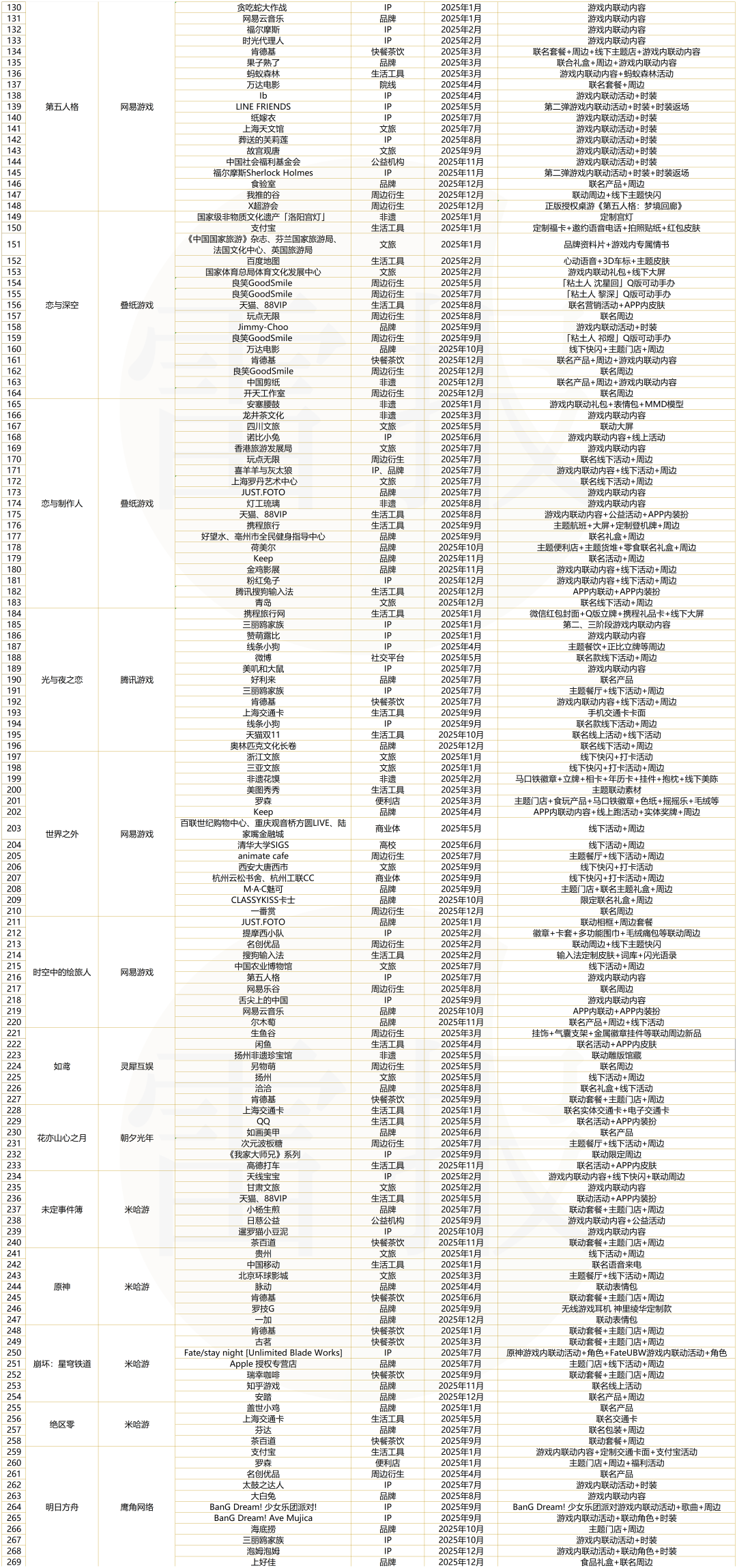 TOP5的格局清晰地表明,拥有庞大用户基数和强社交属性的竞技/派对类游戏,依然是联名市场中最受品牌方青睐的“顶流”。